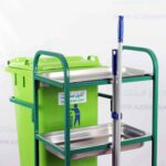 این وسیله با طراحی کاربردی و چند منظوره، امکان حمل ابزار، مواد شوینده، تی، سطل زباله و سایر وسایل مورد نیاز را در یک مجموعه ی منظم فراهم می کند.